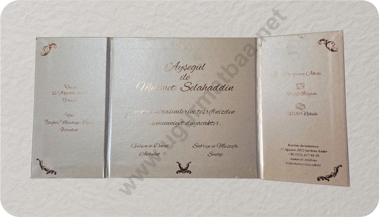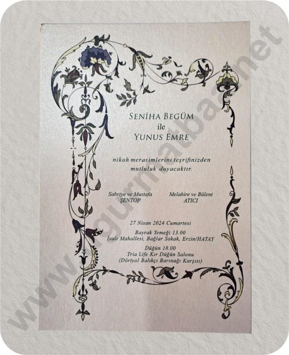 Her davetiye; özenli tasarım, kaliteli kâğıt, kusursuz baskı ve zamanında teslim garantisiyle hazırlanır.